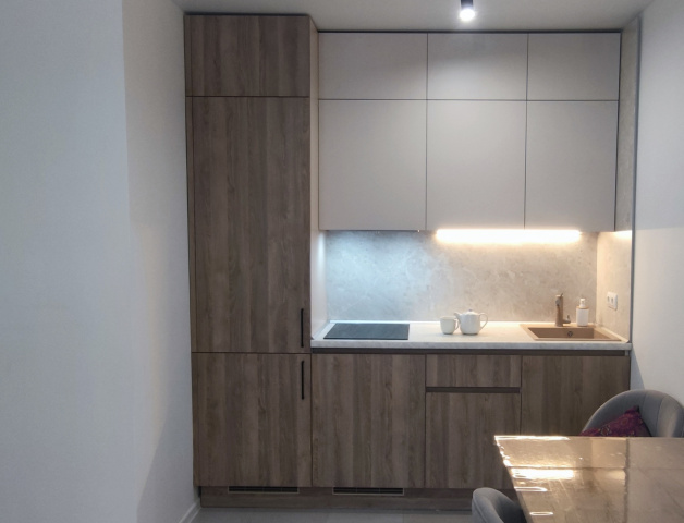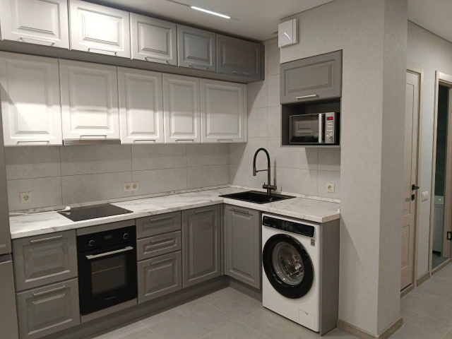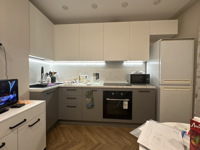 По сборке тоже все прошло гладко, собрали быстро почти за день, на второй день уже по мелочам доделывали. С дизайнером Светланой было приятно и комфортно общаться, вежливая, внимательная, спокойная, профессиональная. Единственный минус - это минус в кошельке. Цена недешевая конечно за кухню из такого материала, но стоит своих денег абсолютно точно.