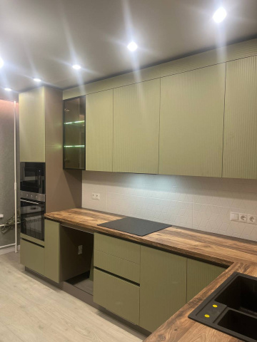 Природная кухня с вертикальной фрезеровской на фасадах