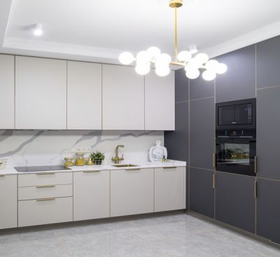 Приобрести квартиру на 31-м этаже высотки в центре Москвы? Голос «Радио Карнавал», Вера Шахова, успешно осуществила эту мечту! Но тут же появилась еще одна – со вкусом обставить новое жильё! Вера хотела интерьеры в стиле арт-деко, и тщательно подошла к их созданию. Особое внимание было уделено «сердцу» дома – кухне. Идеальный вариант нашелся в одном из салонов «Кухонный Двор». Теперь в доме Веры Шаховой красуется чёрно-белая «Ханна Стил» с фасадами «Extra Touch Matt» и великолепными «золотыми» кромками. Дизайн этой модели завораживает, а уникальные «бархатистые» поверхности дарят наслаждение от каждого прикосновения. Функциональная, эргономичная и красивая – «Ханна Стил» всегда на одной волне со своей известной хозяйкой!