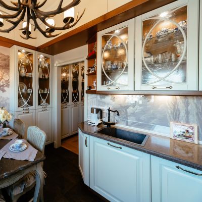 Великолепная, нежная, светлая и восхитительная Светлана Немоляева… Мы просто обязаны были воплотить в жизнь все ее дизайнерские ожидания! И мы сделали это! Теперь дом Светланы Владимировны украшает великолепный в своем благородстве гарнитур «Вильгельм». Прославленная артистка стала владелицей образцовой классической кухни. Каждая линия ее гарнитура совершенна. Это викторианский стиль в безупречном его воплощении!