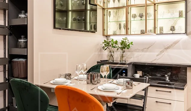 Используя выдвижные системы, вы избавите себя от необходимости покупать лишние контейнеры и лотки для хранения. Все специи, крупы, бутылочки с маслом и, конечно, посуда всегда будут у вас под рукой.