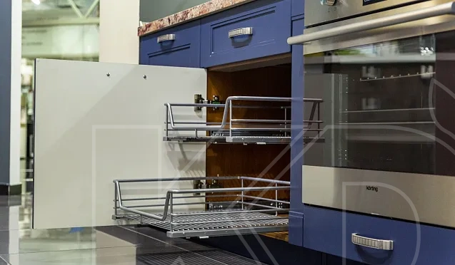 Для использования каждого сантиметра кухонного пространства с пользой рекомендуется использовать угловые шкафы. В свободных углах устанавливают секции для посуды, оснащенные вращающимися полками и выдвижными механизмами. Это позволяет сэкономить место и обеспечивает удобный доступ к содержимому.
