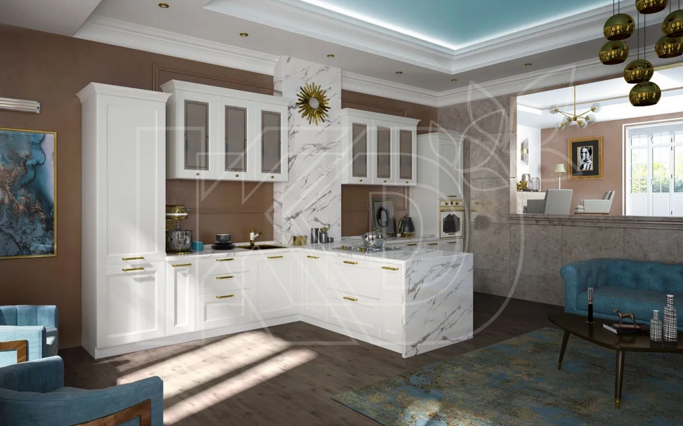 Подобрать мебель для любого помещения будет нетрудно благодаря многообразию оттенков белого. Конфигурация гарнитура может быть любой. В современных интерьерах уместны не только линейные (прямые), угловые, но и П-образные белые кухни. Таким образом, несложно подобрать модель гарнитура для помещения любой площади и планировки.
