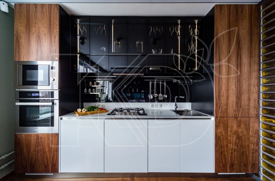 Белая кухня в сочетании с деревом