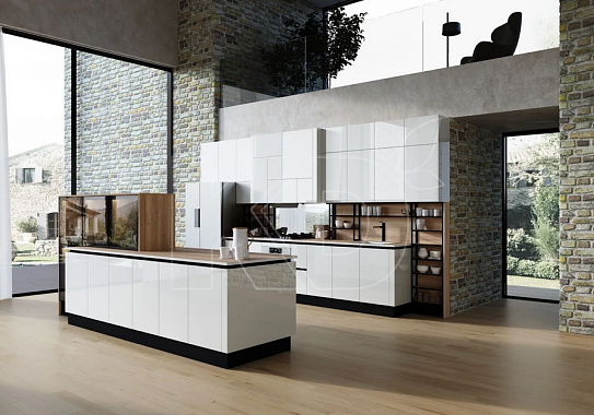 Оригинальное решение для помещения любого размера — белая кухня в стиле модерн. И хотя наиболее эффектно она смотрится в просторных домах, на небольшой площади для нее также найдется место. Благодаря светлому оттенку поверхностей такая кухонная мебель будет визуально расширять пространство, наполняя его светом. При этом базовый оттенок гармонично сочетается с широким спектром палитры, открывая поле для экспериментов при оформлении интерьера.