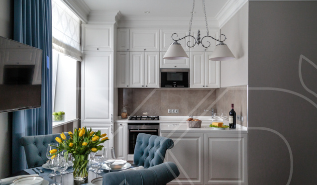 Планировка кухни в белых тонах