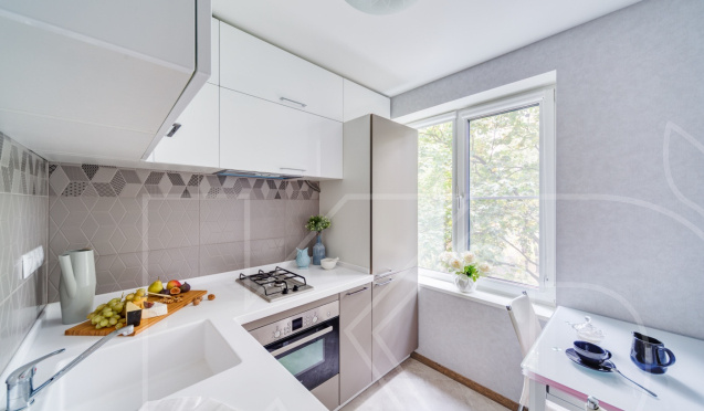 Кухонный гарнитур белого цвета будет смотреться более выигрышно, если оформить его деталями других оттенков. В небольших пространствах лучше использовать вставки светло-серого, голубого или бежевого тона.