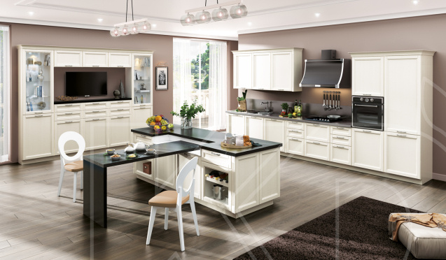 Производители выпускают кухни белого цвета в разных стилях. Для богатых и роскошных интерьеров подойдут классические модели, которые легко узнать по следующим чертам: