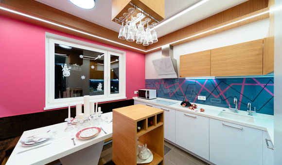 Если монохромные версии кажутся вам слишком скучными, используйте кухни на заказ с бежевыми вставками. Два светлых оттенка гармонично дополнят друг друга, а интерьер будет выглядеть более эффектно.