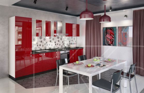 В отличие от угловых, прямые кухни дешевле. Просто измерьте длину стены и купите понравившуюся мебель. Это может быть готовое решение с однотонными фасадами и без декора, тогда на покупке гарнитура удастся сэкономить.