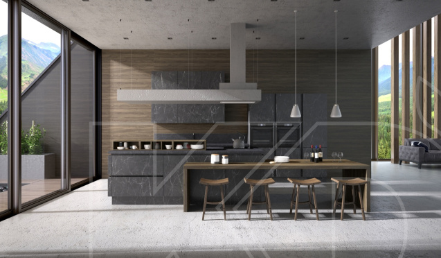 Островная кухня — популярный вариант кухни в черном цвете с центральным островом, который служит рабочей станцией и местом для хранения. Кухня с островом хорошо смотрятся в больших помещениях и обеспечивают достаточно много места для приготовления пищи.
