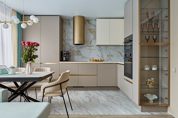 Многие современные проекты включают пеналы или колонны — это высокие шкафы, которые доходят почти до потолка. Их преимущество в том, что они позволяют разместить сразу несколько функциональных зон: встроенную технику, полки для хранения продуктов, выдвижные системы.