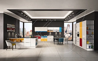 В больших помещениях устанавливают П-образные комплекты. Это отличный вариант для готовки всей семьей или дружеской компанией. Также для просторных комнат подходят модели с барными стойками: классическими, двухуровневыми, совмещенными.