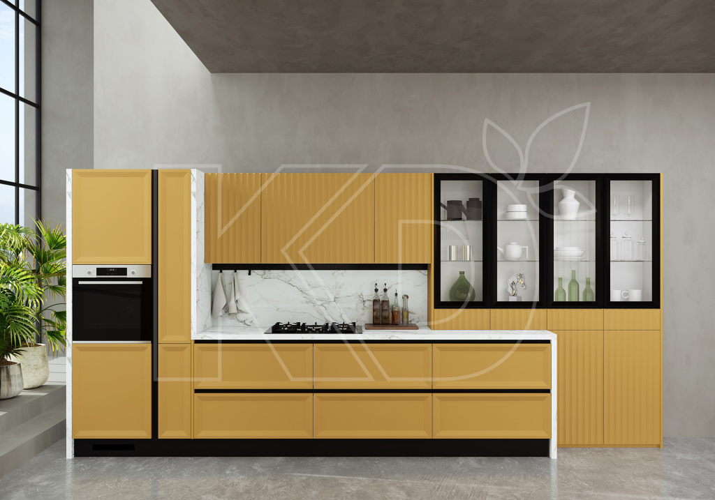 При выборе гарнитура обязательно учитывайте его планировку. Именно от этого зависит, насколько гармонично мебель впишется в пространство. В небольших и средних комнатах обычно устанавливают угловые и линейные комплекты. При этом высокие модули размещают у стен, которые находятся далеко от окна. Такая расстановка обеспечивает комфортный доступ к содержимому шкафов. Ближе к окну следует установить мойку, плиту, столешницу, потому что готовить удобнее при хорошем дневном освещении.