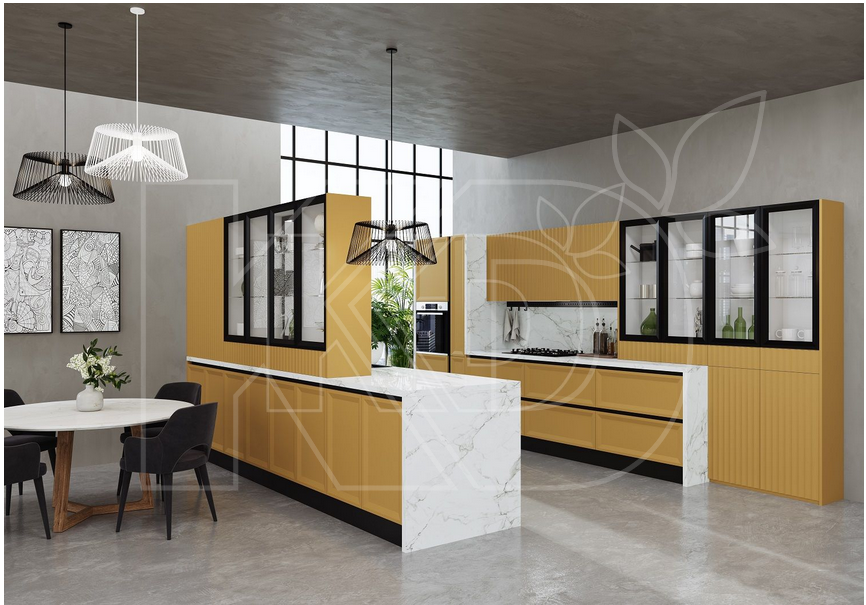 На сайте бренда «Кухонный двор» вы можете заказать гарнитур любой формы: линейный, угловой, с островом, полуостровом или барной стойкой.