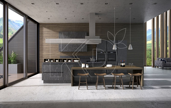 • Кухню сделают менее строгой объемные и фактурные поверхности. Можно использовать природные материалы – дерево, мрамор, гранит и другие виды камня.