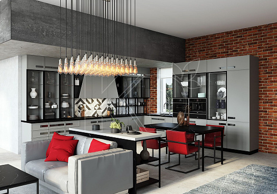 • Эффектный внешний вид. Гарнитур в серо-темных тонах, темно-коричневых тонах, темно-синих выглядит современно и привлекательно. Такое решение подчеркивает смелость и отличный вкус владельцев, приковывает взгляды гостей.