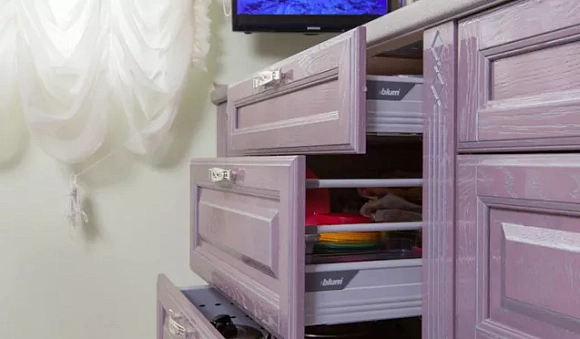 Дизайнеры настоятельно рекомендуют соблюдать пропорции и не перебарщивать лавандовыми тонами. Выходом из ситуации станет кухонный гарнитур фиолетового цвета с дополнительными светлыми тонами. К примеру, при желании можно приобрести красочные многочисленные аксессуары, чтобы украсить помещение точечно.