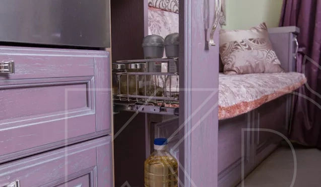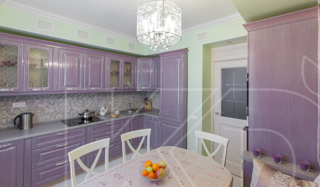 Для прованса подберите сочетание белого цвета с сиреневым оттенком. Светлые стены станут прекрасным фоном для лавандового кухонного гарнитура. На такой кухне должны присутствовать натуральные материалы или имитация металла, дерева и камня. Обставьте кухню мебелью с некоторыми потертостями.