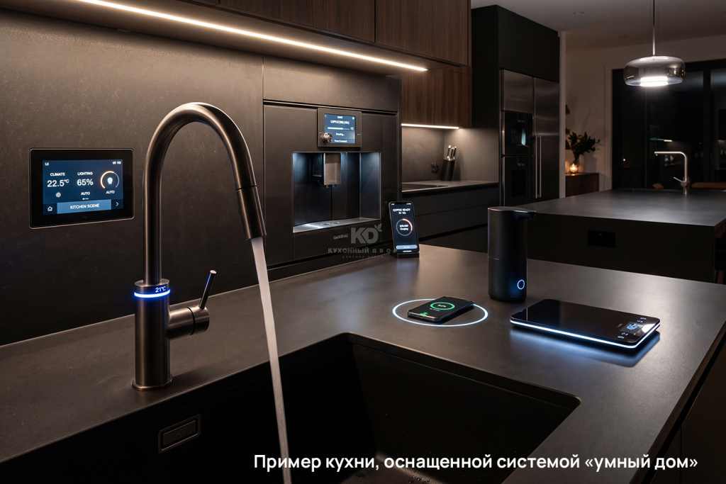 Интеграция сенсорных смесителей, подсветки с датчиками движения и систем «умный дом» превращает кухню в пространство, где техника словно предугадывает ваши шаги. Быт становится проще, ресурсы расходуются экономно, а каждое привычное действие — быстрее и удобнее. Такая система делает современный кухонный интерьер не только стильным, но и умным, комфортным и готовым подстраиваться под ваши привычки.
