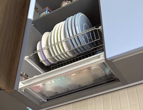 - наклонные полки в шкафах идеально подходят для тарелок, делая их доступными и аккуратно размещенными.