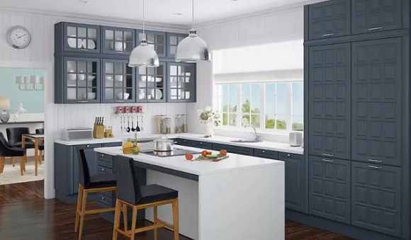 При выборе цвета предпочтение следует отдать светлой палитре. Хорошо будут смотреться версии с кремовыми, бежевыми, молочными фасадами. Так как стиль кантри предполагает использование естественных оттенков, можно декорировать поверхности элементами светло-коричневого, хвойного или фисташкового цвета.