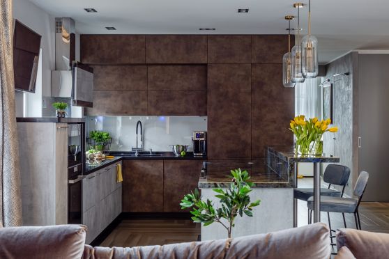 Широкий ассортимент. Кухонный гарнитур в стиле лофт может быть линейным, угловым, островным или с барной стойкой. Планировка зависит от типа и размеров помещения.