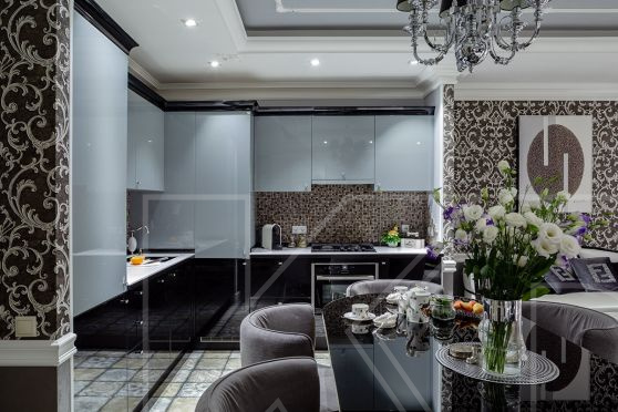 П-образная кухня предполагает размещение шкафов по трем смежным стенам. Этот тип подходит для просторных комнат, так как занимает довольно много места. Данный вариант отличается удобством, так как плита, мойка и холодильник располагаются рядом. При такой планировке все, что нужно будет всегда под рукой, и отпадет потребность в лишних движениях.