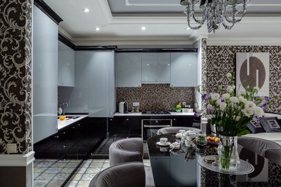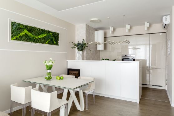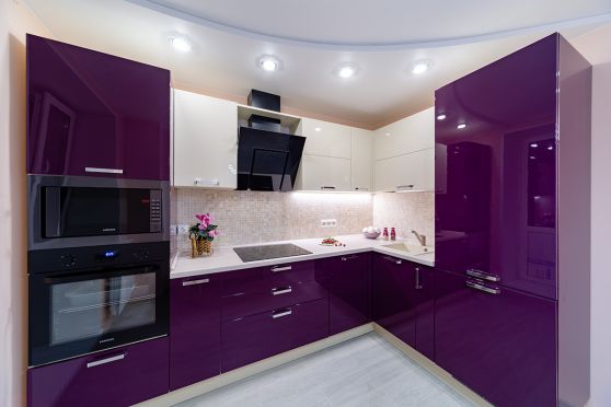 Выбирая мебель для кухни, обратите внимание на ее цвет. Так, дизайнеры советуют использовать в небольших помещениях гарнитуры светлых оттенков с глянцевыми фасадами. Такая расцветка и фактура визуально расширяет пространство, делает его более светлым и просторным.