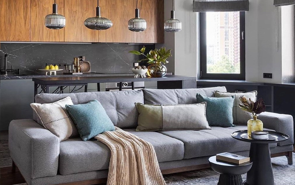 В больших помещениях кухня и гостиная часто оказываются совмещенными. Визуально отделить одну зону от другой можно с помощью островной конструкции, барной стойки или стеллажа. Зонирование с помощью кухни на заказ от производителя технически выполнить гораздо проще. Дело в том, что комплект будет изготовлен с учетом архитектуры пространства.
