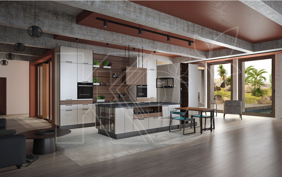 Сначала нужно продумать, какая кухонная мебель нужна, как она будет стоять, что нужно разместить в шкафах за закрытыми дверцами и на открытых стеллажах, какая бытовая техника будет стоять в нижней части гарнитура. Также нужно определиться с размерами обеденного стола и количеством стульев, чтобы члены семьи принимали пищу не по очереди, а все вместе. А может быть, на этой кухне будет собираться большая бренд родственников или друзей? Тогда нужно подумать о раскладном столе и диванчиках, на которых поместились бы все. Возможно, обеденный стол сможет заменить высокая барная стойка. Она удобна для быстрых перекусов. Однако это не самый лучший вариант, если в доме проживают маленькие дети.