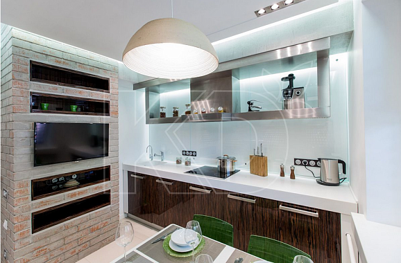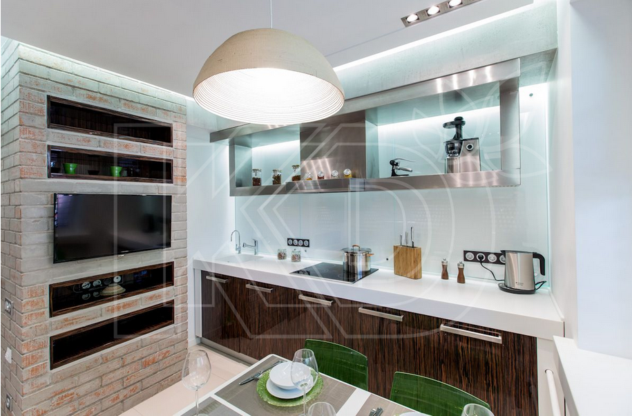 Кроме того, стоит учитывать габариты помещения. Так, для маленькой кухни желательно выбирать светлую кухню. Она способна визуально увеличивать пространство. Эффект можно усилить при установке гарнитура с глянцевыми фасадами.