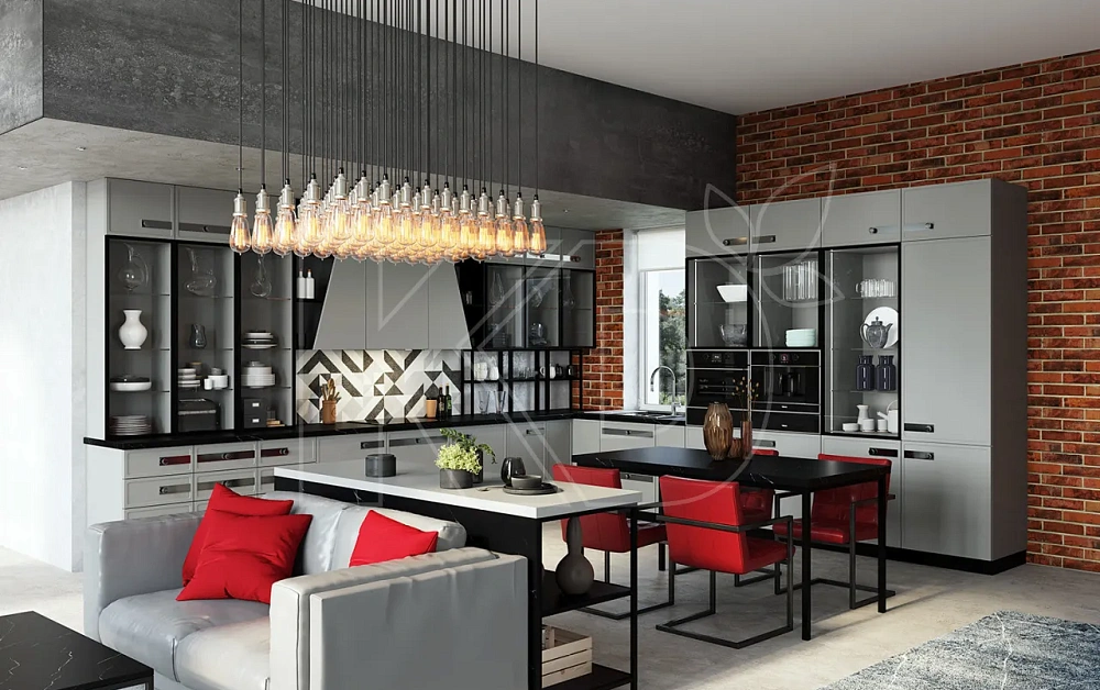 В модерне часто применяются современные материалы – закаленное стекло, хромированный металл и высокопрочный пластик. Гарнитуры в стиле модерн оснащаются разнообразными системами для хранения и организации пространства на кухне.