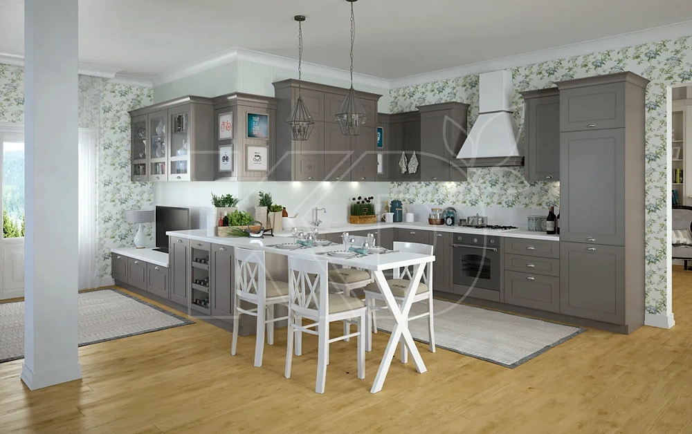 Заказать кухню в стиле прованс можно для помещения любого размера. В небольшое пространство легко встроится лаконичная линейная версия с самыми светлыми поверхностями и минимальным количеством декора. Для большой площади можно подобрать вариант, оформленный резьбой, коваными деталями, растительными узорами.
