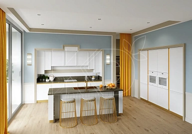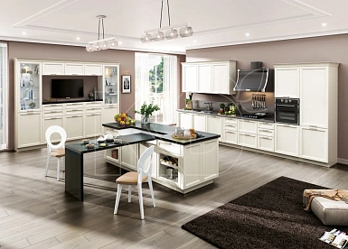 Классическая кухня отличается элегантностью, изяществом и роскошью. Подобные решения подходят для просторных помещений с высокими потолками и большими окнами. В небольших комнатах кухонная мебель в стиле классика будет смотреться несколько нелепо и вычурно из-за того, что для ее оформления используется роскошный декор – позолоченные элементы, лепнина, резьба, патина, изогнутые ручки.
