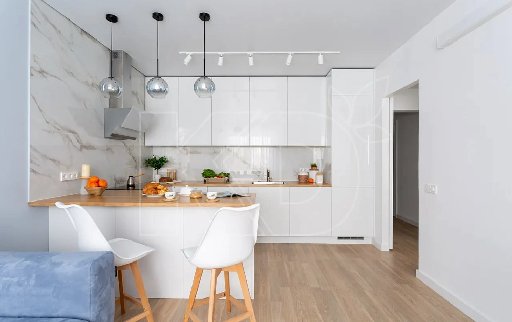 Для небольших помещениях белая кухня – настоящая находка, способная визуально увеличить пространство. Обеспечивается это за счет того, что светлые поверхности отражают солнечные лучи. Разбавить монотонность белоснежных фасадов можно с помощью ярких акцентов – фартука, рабочей поверхности и элементов декора.