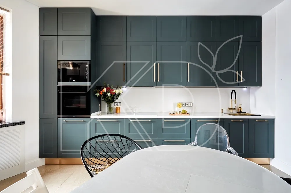 Мятный тон придаст помещению свежести и легкости. В этом году он может использоваться как основной оттенок или в качестве дополнительного. Мятный часто применяется для отделки полок, фартука или других элементов.