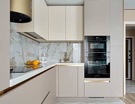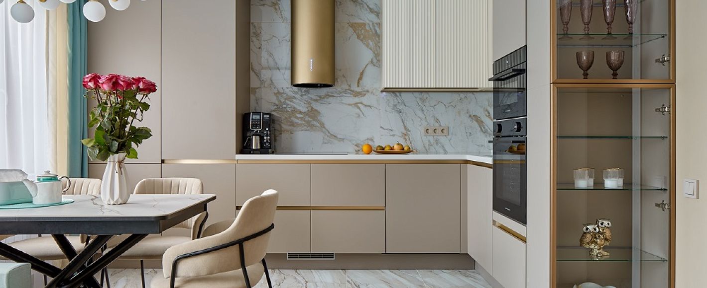 Кухня как «тихий ассистент»: матовый кашемир и золотой пунктир