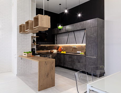 Функциональность здесь не спорит с эстетикой, а поддерживает её. На этой кухне вы не найдете лишних деталей — только характер, порядок и свободу быть собой.