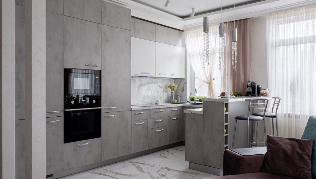 • Лаконичность: Чистые линии позволяют кухне гармонично вписаться как в лофт, так и в неоклассику.