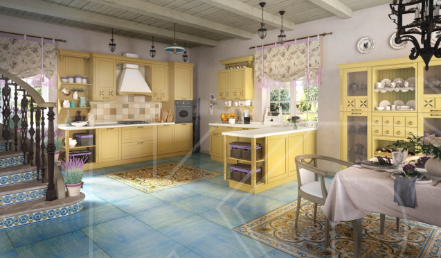 Кухни кантри наоборот ценят некоторую «тесноту» и домашний уют. Однако столовая с таким стилем смотрится не самым лучшим образом, поэтому она размещается отдельно.