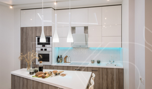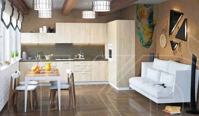 Широкий ассортимент. Планировка комплекта может быть линейной, П-образной, островной, угловой. Интересно выглядят модели с барными стойками.