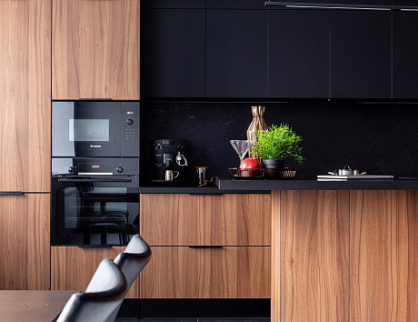 В таких проектах нет случайных зазоров или “мертвых зон”: каждый шкаф и модуль подбирается с точностью до миллиметра. Это особенно важно для встроенной техники — ведь её нужно встраивать точно и безопасно.