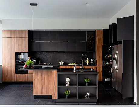 Современные интерьеры часто предполагают кухню с вашим дизайном, где границы между рабочей зоной и гостиной практически отсутствуют. В таких проектах дизайнеры бренда «Кухонный Двор» помогают подобрать мебель, которая будет органично сочетаться с интерьером всей квартиры: цвет, фактура, освещение и стиль — всё работает на создание единого гармоничного пространства.