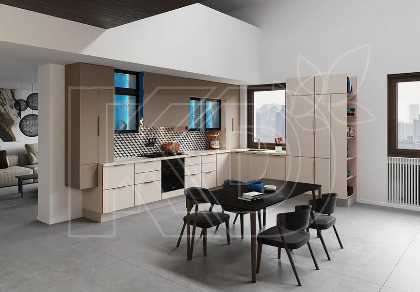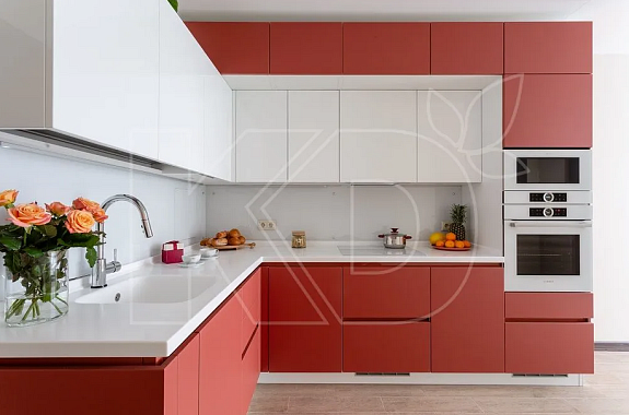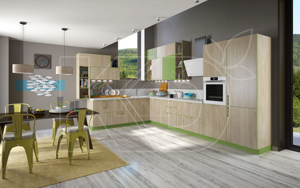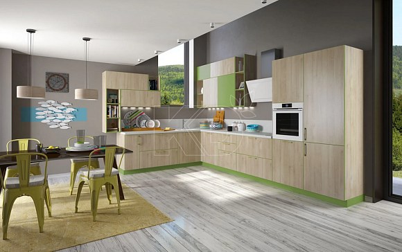 Размещенная вдоль двух смежных стен мебель позволяет рационально использовать пространство, благодаря чему органично вписывается как в просторные, так и в относительно небольшие помещения. Как правило, в угол такого углового гарнитура встраивают мойку, а сверху и снизу располагают вместительные шкафы. Разместив справа и слева от мойки варочную поверхность и холодильник, можно создать так называемый эргономичный рабочий треугольник. Он позволяет сделать приготовление пищи максимально удобным для кулинара, которому не придется совершать лишних движений – ведь все нужное для кулинарного творчества и так будет находиться у него под рукой.