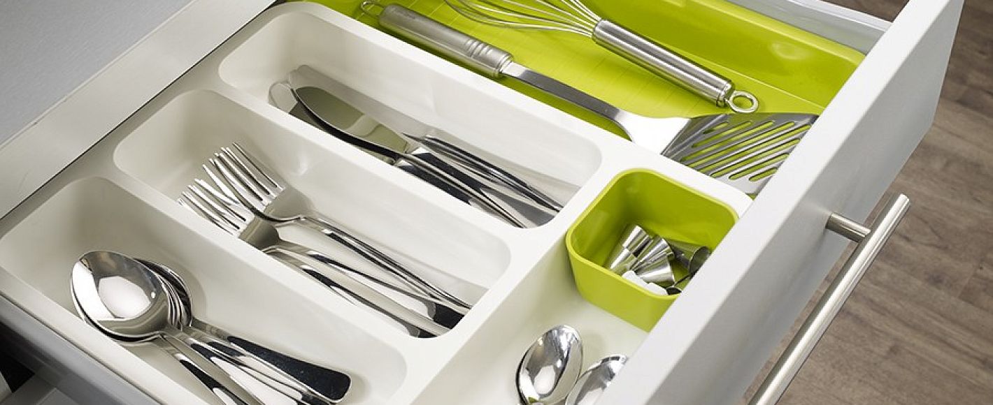 Главное правило хорошего дизайна – предмет должен быть функциональным и при этом красивым, а в случае хранения столовых приборов «боль» вызывает вода, которая непременно стекает с них после мытья. С этой проблемой отлично справляются органайзеры в виде «слонов» или других животных, так как из-за своей конструкции здесь предусмотрено отведение влаги.