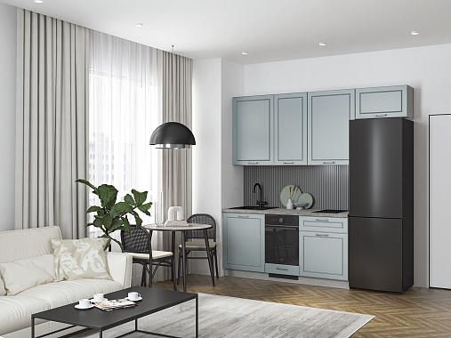 Несмотря на компактные размеры, Уна предлагает максимум удобства: антресольные шкафы увеличивают объём хранения, сохраняя визуальную лёгкость. Фасады мы изготовили из прочной экоплиты EGGER — качественного материала, устойчивого к воздействию влаги и механическим повреждениям. Все элементы продуманы до мелочей, чтобы кухня оставалась эргономичной, удобной и приятной в использовании на многие годы.