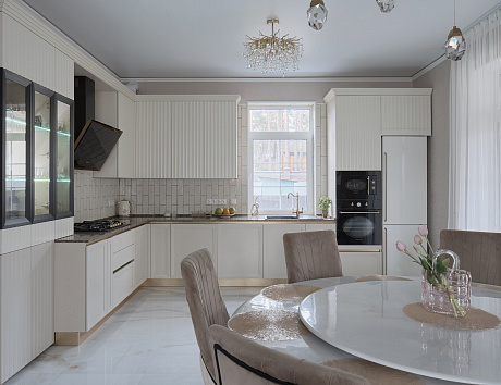 Г-образная кухня подходит для помещений нестандартной формы, включая комнаты с окнами в углу, нишами, колоннами или выступами. Правильный подход к проектированию позволит сделать такую кухню функциональной и гармоничной.