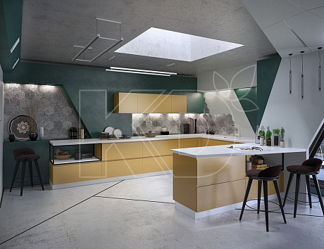 Все большую популярность среди потребителей приобретают гарнитуры, модули которых занимают место возле трех смежных стен. Планировка П-образной кухни позволяет содержать всю необходимую бытовую технику, посуду и столовые приборы.