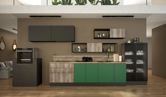 Линейная кухня — идеальный тип мебели для ситуаций, когда кухонная мебель остается открытой. Так в кухнях, которые выполнены в больших помещениях, включающих в себя гостиную и столовую, можно подумать о выделении отдельной стены под кухню. В этом случае совмещенная с гостиной кухня будет прекрасно сочетаться в плане цветовой палитры и стилистической направленности.